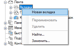 Новая вкладка (с именем "Новая вкладка") помещается внизу узла "Вкладки".