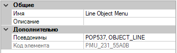 - В поле "Описание" панели "Свойства" введите, если требуется, описание для контекстного меню.