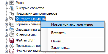 - На вкладке "Адаптация" панели "Адаптации <имя файла> щелкните правой кнопкой мыши узел "Контекстные меню" и выберите "Новое контекстное меню".