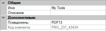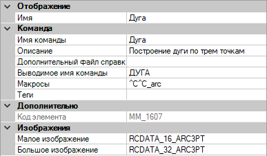 - В разделе "Отображение" панели "Свойства" измените требуемым образом значения свойства "Имя" (не "Имя команды" или "Выводимое имя команды").