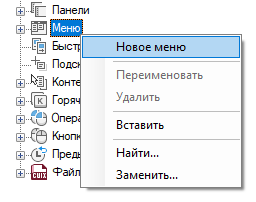 На вкладке "Адаптация" панели "Адаптации: <имя файла>" щелкните правой кнопкой мыши узел "Меню". Выберите "Новое меню".
