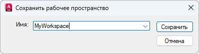 В поле "Имя" диалогового окна "Сохранение рабочего пространства" введите имя для создания нового рабочего пространства или выберите имеющееся рабочее пространство в раскрывающемся списке для его замены.