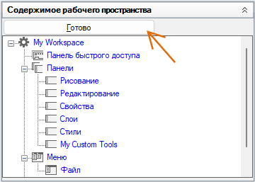 На панели "Компоненты рабочего пространства" нажмите кнопку "Готово".