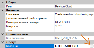 - На панели "Свойства" нажмите кнопку […] в поле "Клавиши", чтобы открыть диалоговое окно "Клавиши быстрого вызова".