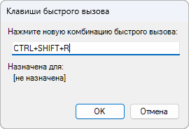 - Чтобы назначить комбинацию клавиш и закрыть диалоговое окно "Клавиши быстрого вызова", нажмите "OK".