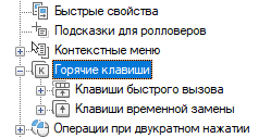 - На вкладке "Адаптация" панели "Адаптации <имя файла> выберите узел "Горячие клавиши".