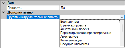 - В поле "Группа инструментальных палитр" выберите одну из групп инструментальных палитр в списке, чтобы связать ее с вкладкой ленты.