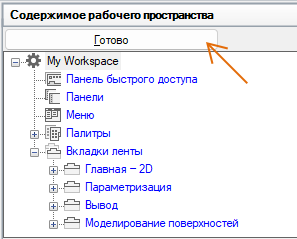 - На панели "Компоненты рабочего пространства" нажмите кнопку "Готово".