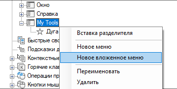 Аналогичным образом добавьте во вложенное меню остальные необходимые команды.