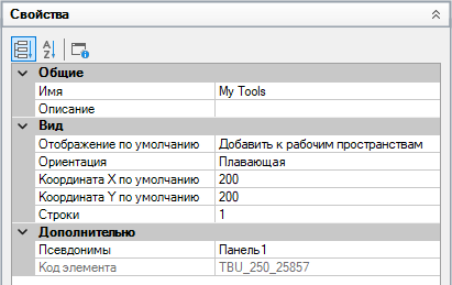 Прим.: Изменения свойств панели инструментов влияют только на первоначальный внешний вид панели инструментов после загрузки файла адаптации CUIx. Для управления внешним видом панели рекомендуется использовать рабочее пространство.