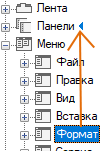 1. На вкладке "Адаптация" разверните на панели "Адаптации <имя файла>" узел "Меню", щелкнув знак "плюс" (+) рядом с ним.