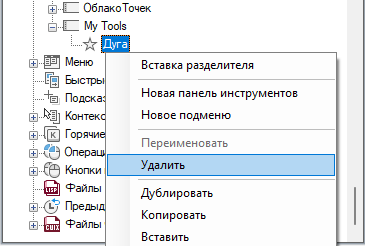 3. Нажмите правую кнопки мыши на команде или элементе управления, которые надо удалить. Выберите "Исключить".
