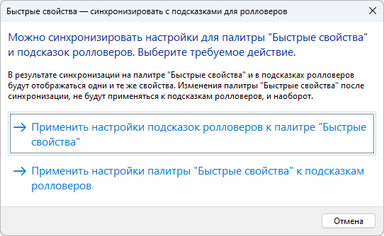 Если рядом со свойством установлен флажок, оно будет отображаться в подсказке ролловера при наведении курсора на объект выбранного типа в окне чертежа. Чтобы удалить свойство из подсказок для выбранного типа объектов, снимите флажок рядом с этим свойством.