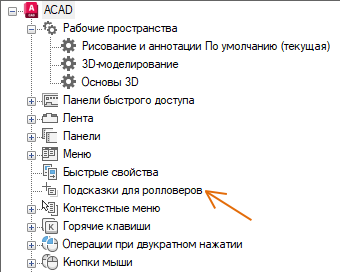 Если рядом с типом объектов установлен флажок, при наведении в окне чертежа курсора на объект этого типа появится всплывающая подсказка со свойствами, выбранными для данного типа объектов. Чтобы отключить поддержку данным типом объектов подсказок ролловеров, снимите флажок рядом с ним.