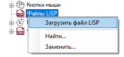 Прим.: Узел «Файлы LISP» доступен только в AutoCAD.