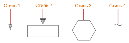 Задание стиля стрелок цепей. Можно выбрать один из четырех предварительно определенных стилей или пользовательский стиль.