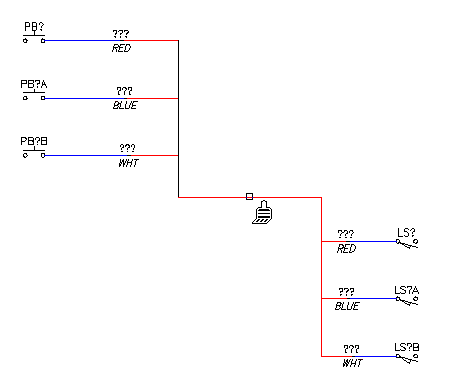 Повторите эту процедуру в отношении трех концевых выключателей ЗАМЫКАЮЩИЙ КОНТАКТ, вставив их в правую часть чертежа (чуть ниже кнопок включения).