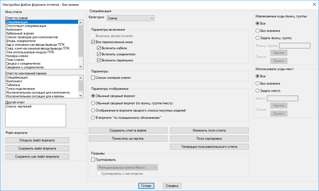 Определение того, нужно ли включить в отчет информацию о кабелях, соединителях и перемычках. Для включения или исключения необходимых параметров используйте соответствующие флажки.