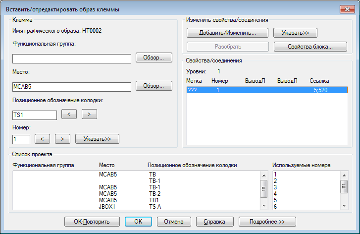 Инструмент "Многократная вставка" используется для вставки и аннотирования·последовательности клемм.