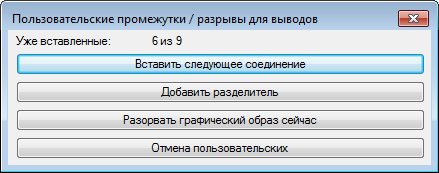 В диалоговом окне отображается, какой вывод соединителя уже был вставлен. Продолжайте нажимать "Вставить следующее соединение", пока не будут размещены шесть из девяти соединений.