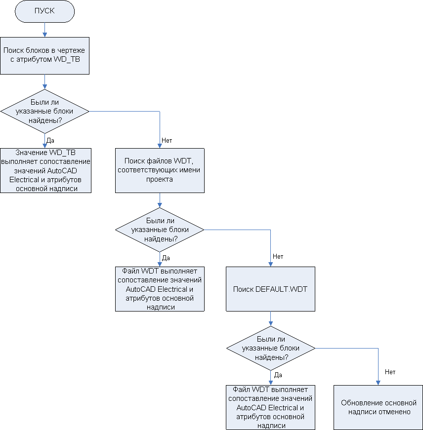 Во время обновления основной надписи AutoCAD Electrical toolset выполняет следующую процедуру для определения того, какой способ необходимо использовать.