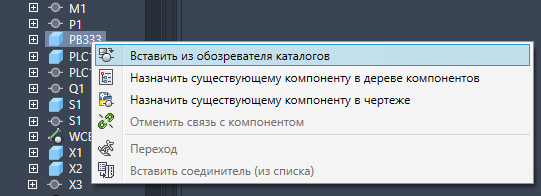 Свяжите несвязанную деталь Inventor в дереве компонентов с компонентом AutoCAD Electrical toolset, вставленным из обозревателя каталогов в чертеже.