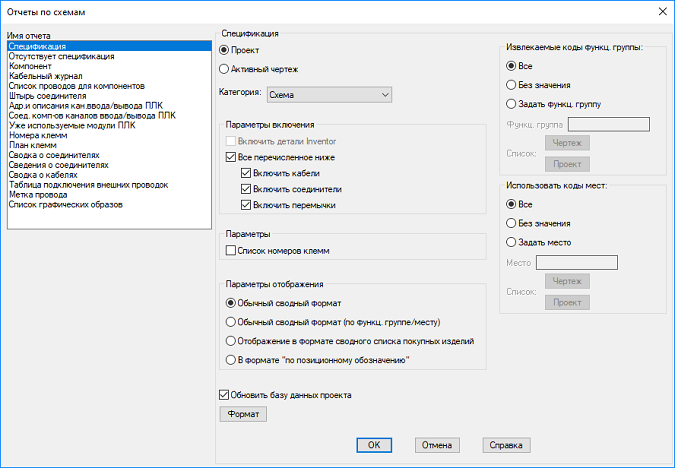 Определение того, нужно ли включить в отчет информацию о кабелях, соединителях и перемычках. Для включения или исключения необходимых параметров используйте соответствующие флажки.