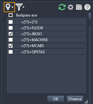 - Снимите флажок "Выбрать все", а затем выберите значения, которые требуется показать на виде дерева компонентов.