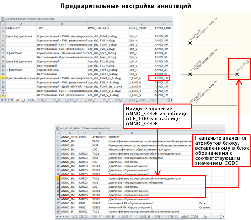 Этот лист обеспечивает связь между выбранной цепью (определяемой значением ANNO_CODE), особым блоком обозначений (определяемым своим значением CODE) и особым атрибутом в блоке обозначений.