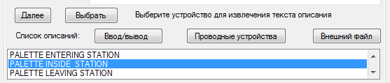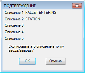 Выберите выделенное описание "СТАНЦИЯ ПОДДОНА ВНУТРИ" и нажмите кнопку "ОК".