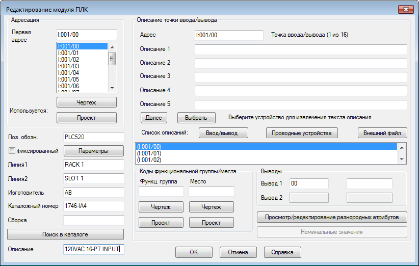 Редактирование модуля ПЛК для добавления описаний ввода/вывода.