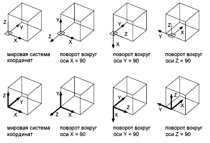 Если ориентировать большой палец правой руки согласно положительному направлению оси Z и согнуть остальные пальцы, то положительное направление вращения будет совпадать с направлением, указываемым согнутыми пальцами.