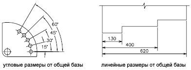 Нанесение линейных, угловых или ординатных размеров от базовой линии предыдущего или выбранного размера.