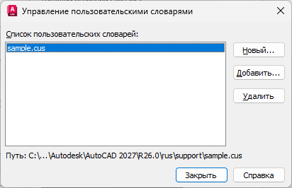 Создание нового пользовательского словаря. Созданный словарь будет иметь статус текущего.