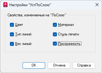 Изменяет материал выбранных объектов на ПоСлою (SETBYLAYERMODE=8)