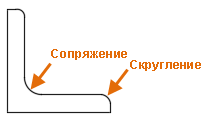 Сопряжения и скругления соединяют два объекта дугой, направленной по касательной, в случае двумерного представления, а для 3D-тел формируют скругленный переход между смежными гранями.