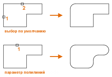 Сопряжение или скругление можно вставить в одной или во всех вершинах 2D-полилинии с помощью одной команды. Чтобы добавить сопряжение или скругление в каждую вершину полилинии, используйте параметр "Полилиния".