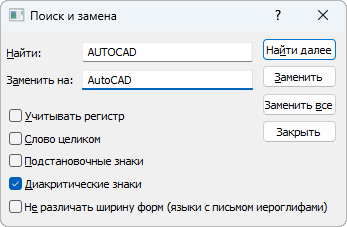 МТЕКСТ (команда) найти: выберите «Поиск и замена» в текстовом редакторе или в меню быстрого вызова МТЕКСТ.