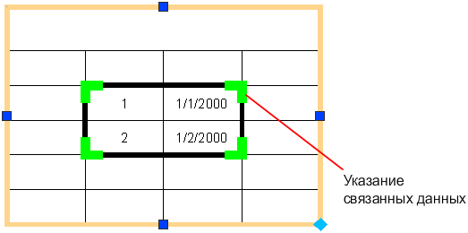 В таблице, содержащей связи с данными, вокруг связанных ячеек отображаются индикаторы. При наведении курсора на связь с данными отображается информация о связи с данными.