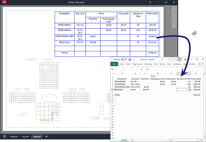 После изменения связанной электронной таблицы, например после добавления строки или столбца, можно обновить таблицу на чертеже в соответствии с этим изменением с помощью команды СВЯЗЬОБНОВИТЬ. Аналогично, после изменения таблицы на чертеже можно с помощью той же команды обновить электронную таблицу, приведя ее в соответствие с этим изменением.