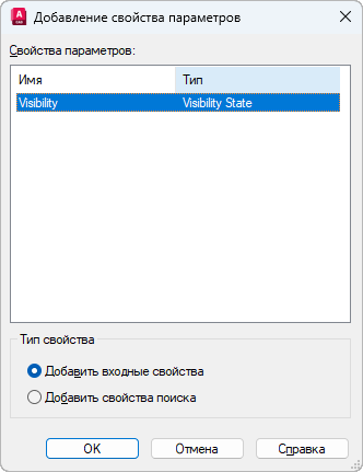 Диалоговое окно "Добавление свойства параметров"