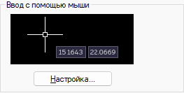 Когда ввод с помощью мыши (курсора) включен и выполняется команда, в подсказке ввода рядом с курсором отображаются координаты перекрестья. Координаты можно вводить в окне подсказки, а не в командной строке.