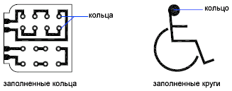 Кольца – это заполненные круги или замкнутые широкие полилинии круглой формы.