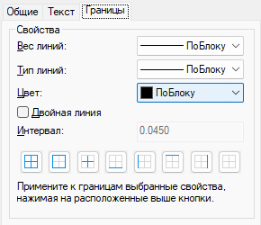 Назначение веса линий границам, которые задаются с помощью кнопки "Граница". При использовании широких линий может потребоваться увеличить отступы от границ ячеек.