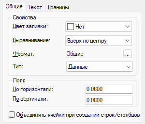 Задание расстояния между границами и содержимым ячеек. Параметры отступа от границ ячеек применяются ко всем ячейкам таблицы. Значение по умолчанию для отступа равно 0,06 (британская система) или 1,5 (метрическая система).