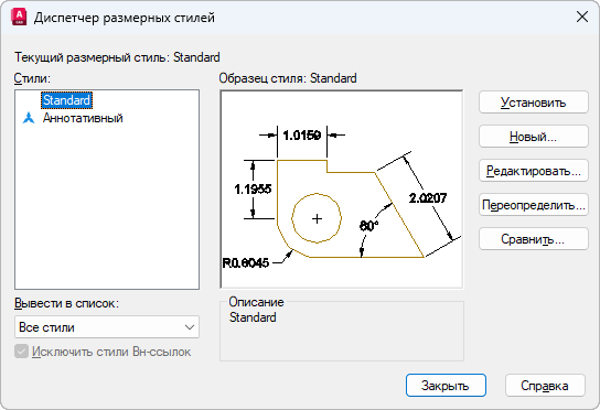 Имеющиеся в чертеже размерные стили определяют внешний вид размеров.