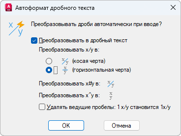 Устанавливает значения по умолчанию для символов, автоматически преобразуемых в дробь.