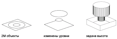 Прим.: Несмотря на то что добавление высоты придает 2D-объектам объемный вид, они остаются двумерными объектами.