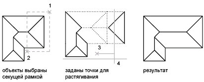 С помощью команды РАСТЯНУТЬ переместите конечные точки объектов, которые пересекают рамку выбора или расположены внутри нее.