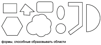 Можно создавать области из объектов, образующих замкнутые контуры. Контуры могут состоять из отрезков, полилиний, окружностей, дуг, эллипсов, дуг эллипсов и сплайнов, ограничивающих область.